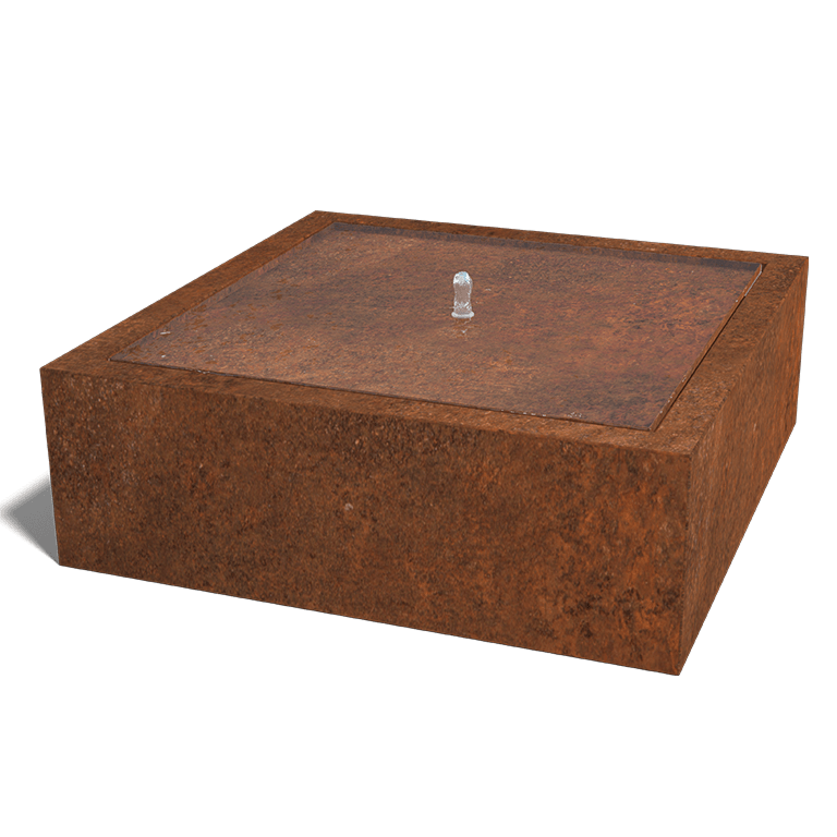Ūdens galds tiek izgatavots no augstas kvalitātes Corten-A tērauda loksnes. Šai metāla šķirnei ir unikāla īpašība, ka tā veido ļoti blīvu oksīda ādu (rūsas slāni). Rūsēšana ir neiespējama. Blīvā oksīda āda aizsargā dziļāk esošo materiālu no skābekļa, tādējādi oksidācija tiek ievērojami palēnināta, kamēr korozija turpinās. Ūdens galds tiek piegādāts nerūsējošā, pelēkā metāla krāsā. Brūns/oranžs rūsas slānis veidojas dažu nedēļu līdz mēnešu laikā, šai procesā nav nepieciešama apstrāde. Rūsēšanas procesā ūdens galds var atstāt nospiedumus. Corten tērauds ir metāla sakausējums, kas sastāv no dzelzs, pie kura ir pievienots varš, fosfors, silīcijs, niķelis un hroms.