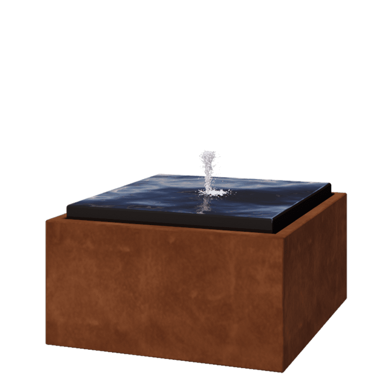 Ūdens ornaments tiek piegādāts kopā ar atbilstošu sūkni ar vadu. Sūknis, kas atrodas tvertnes iekšpusē, nodrošina, ka ūdens tiek pacelts uz augšu. Pēc tam ūdens plūdīs pāri iekšējai plāksnei, lai pēc tam atkal nokristu tvertnē. Pirmajos mēnešos ar corten tērauda ūdens ornamentu būs jāmaina ūdens, līdz rūsas veidošanās ir pabeigta. Sals gadījumā sūknis jāizslēdz. Kā papildu opciju var izvēlēties LED apgaismojumu.