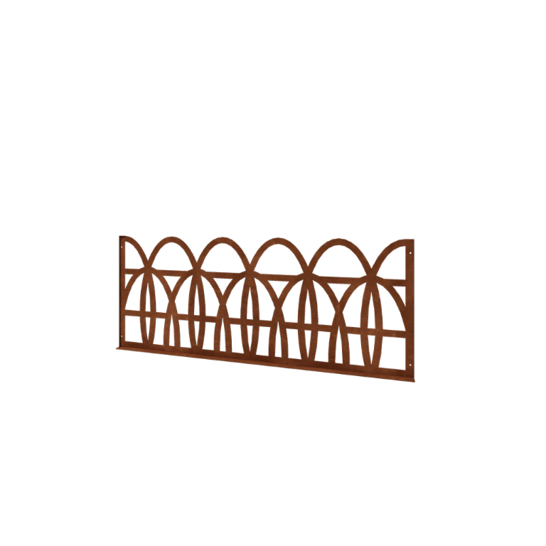 Šis corten tērauda dekoratīvais žoga panelis ir dekoratīvs risinājums zonas norobežošanai caurspīdīgā veidā ar unikālu izskatu.
