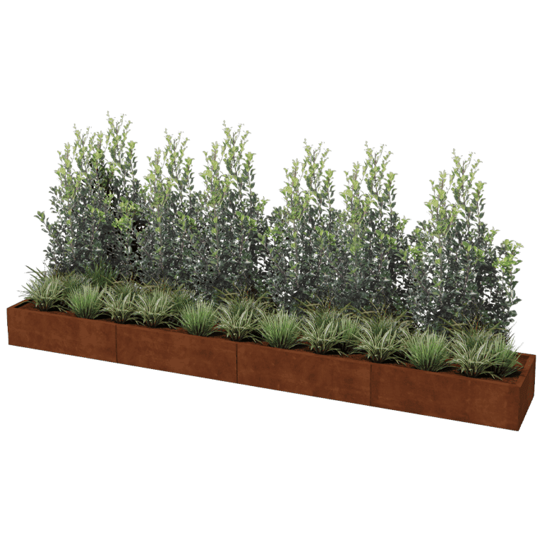 Šis augu pods ir modulārs tērauda augu pods, kas tiek piegādāts kā būvniecības komplekts. Pods tiek veidots no atsevišķiem paneļiem un stūriem. Podus var pilnībā savienot bez redzamām stiprinājumiem. Mūsu modulārā sistēma ļauj izveidot arī ļoti lielus izmērus. Izmantojot stūrus, ir iespējamas unikālas formas, kuras citur nav pieejamas kā standarts. Skatiet rokasgrāmatu, lai iegūtu vairāk informācijas.