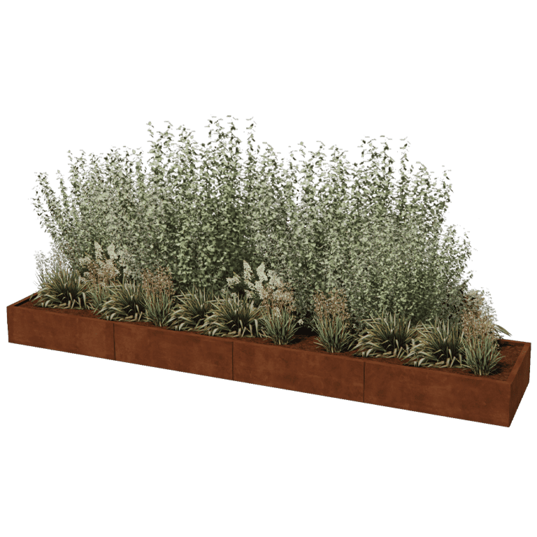 Šis augu pods ir modulārs tērauda augu pods, kas tiek piegādāts kā būvniecības komplekts. Pods tiek veidots no atsevišķiem paneļiem un stūriem. Podus var pilnībā savienot bez redzamām stiprinājumiem. Mūsu modulārā sistēma ļauj izveidot arī ļoti lielus izmērus. Izmantojot stūrus, ir iespējamas unikālas formas, kuras citur nav pieejamas. Skatiet rokasgrāmatu, lai iegūtu vairāk informācijas.