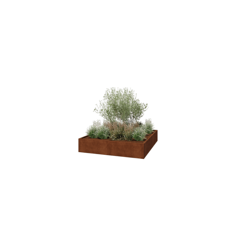 Kortena tērauda puķu kaste - Kvadrāts - 200 x 200 x 40 cm - Metināts - Bez pamatplates