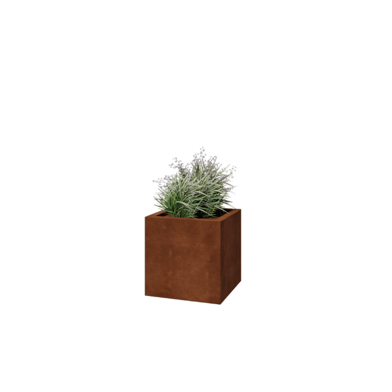 Kortena tērauda puķu kaste - Kvadrāts - 50 x 50 x 50 cm - Metināts - Ar pamatplati