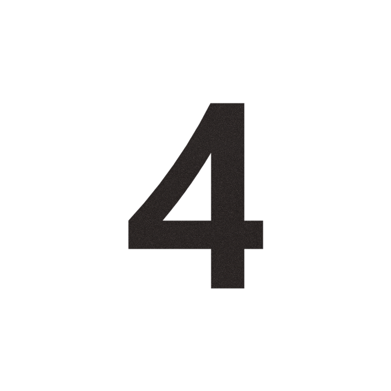 Nerūsējošā tērauda mājas numurs 4 - 11,7 x 15 cm - RAL9005 smalkas tekstūras (melns) - Pašlīmējošs