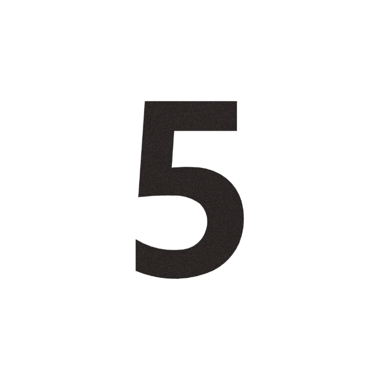 Nerūsējošā tērauda mājas numurs 5 - 9,2 x 15 cm - RAL9005 smalkas tekstūras (melns) - Pašlīmējošs