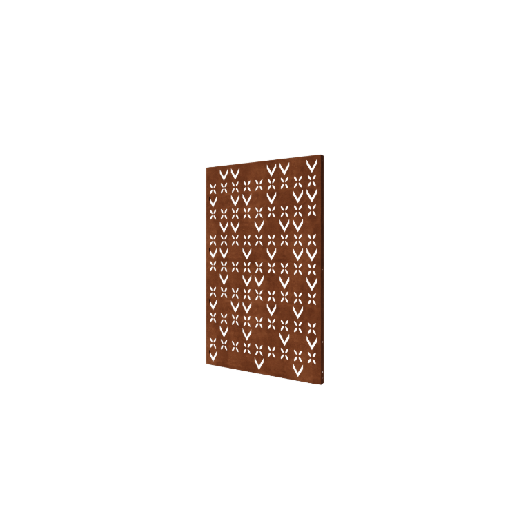 Šis panelis ir izgatavots no augstas kvalitātes Corten-A tērauda, metāla sakausējuma, kas sastāv no dzelzs, vara, fosfora, silīcija, niķeļa un hroma. Unikālā corten tērauda iezīme ir blīvas oksīda ādas veidošanās, kas kalpo kā aizsargājoša rūsas kārta. Šī kārta novērš caurpuvumu un aizsargā iekšējo materiālu no turpmākas oksidācijas, kamēr korozijas process lēnām turpinās.